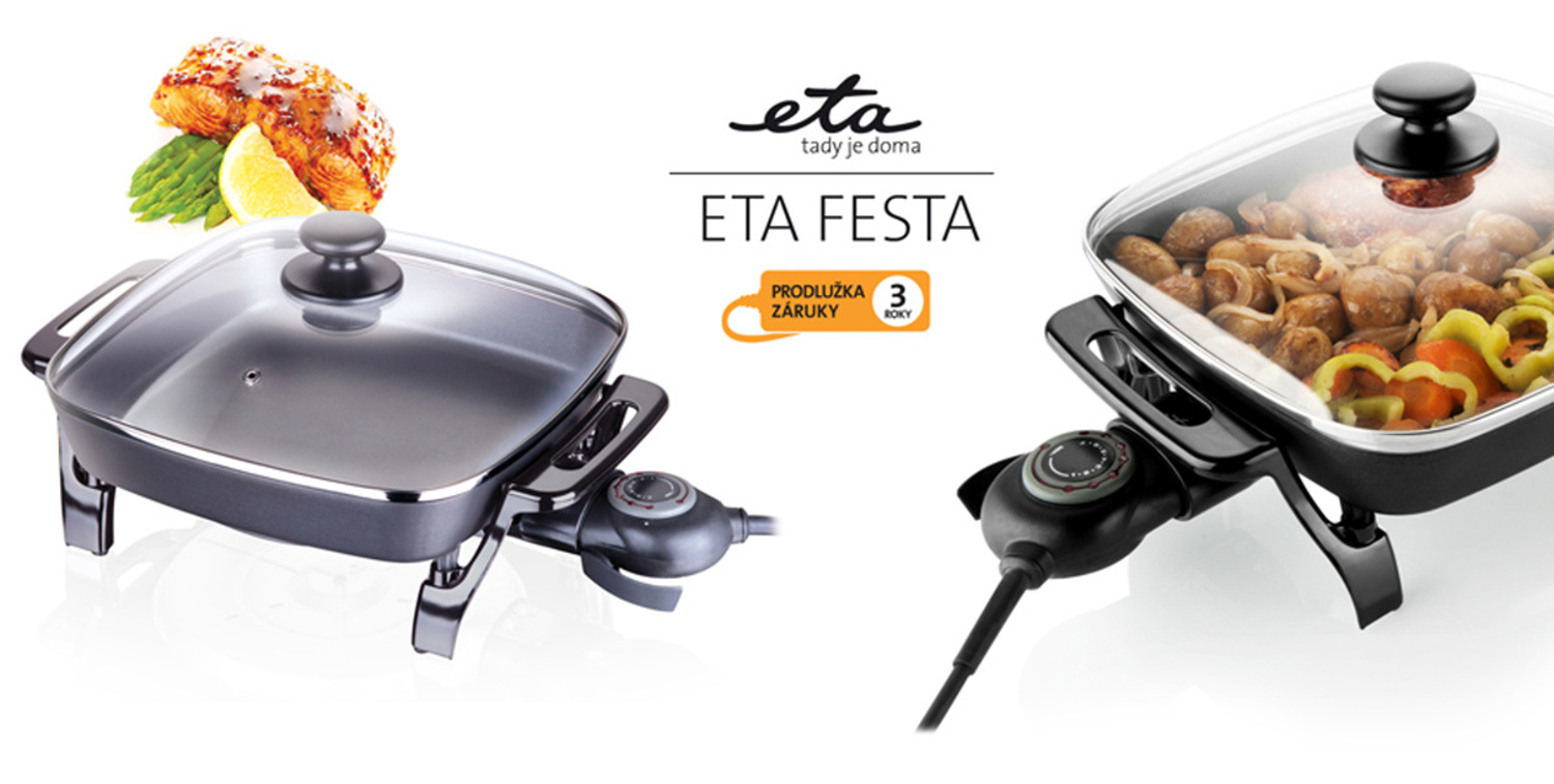 Elektrickou pánev ETA Festa o kompaktních rozměrech 28 x 28 cm si můžete vzít na chalupu nebo studentskou kolej, kde vám tak bude chutnat stejně jako doma. Je praktickým pomocníkem pro vaření bez plotýnky a sporáku.