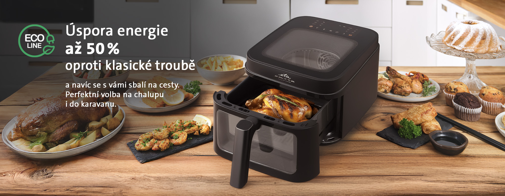 ETA Fritta Ultima bez námahy zastoupí klasickou horkovzdušnou troubu – a to s až o 50 % nižší spotřebou energie. Ideální volba pro ty, kdo chtějí šetřit bez kompromisů na chuti. Fritéza se navíc nemusí předehřívat, takže kromě elektřiny ušetříte i čas.