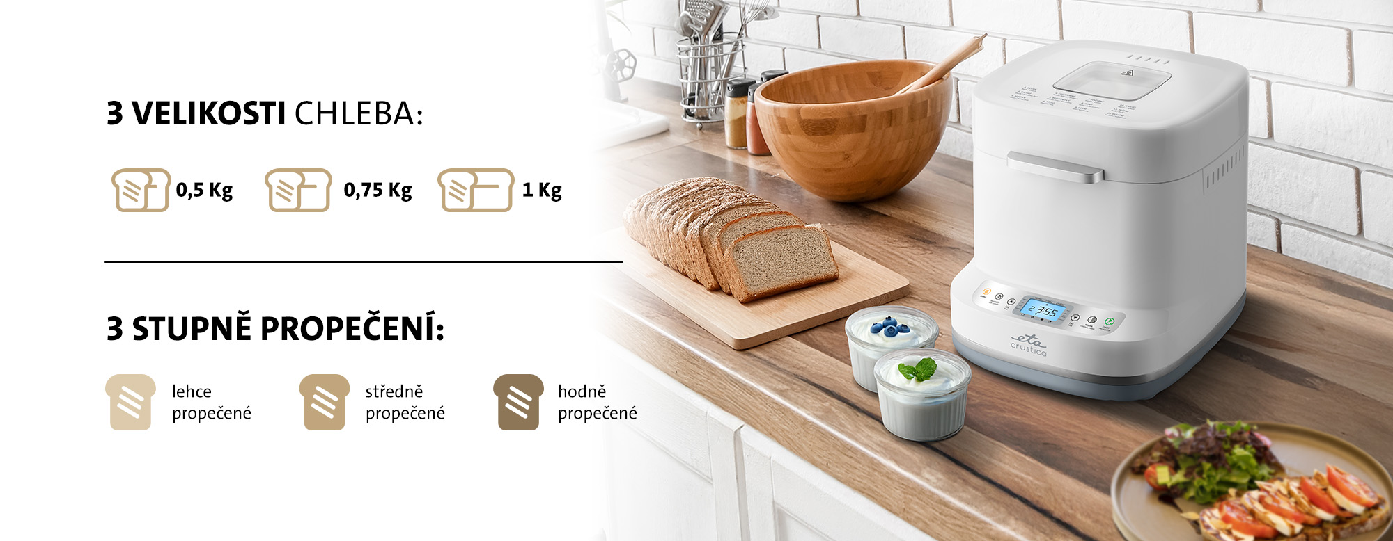 - Možnost volby 3 velikostí chleba (0,5 kg / 0,75 kg / 1 kg)