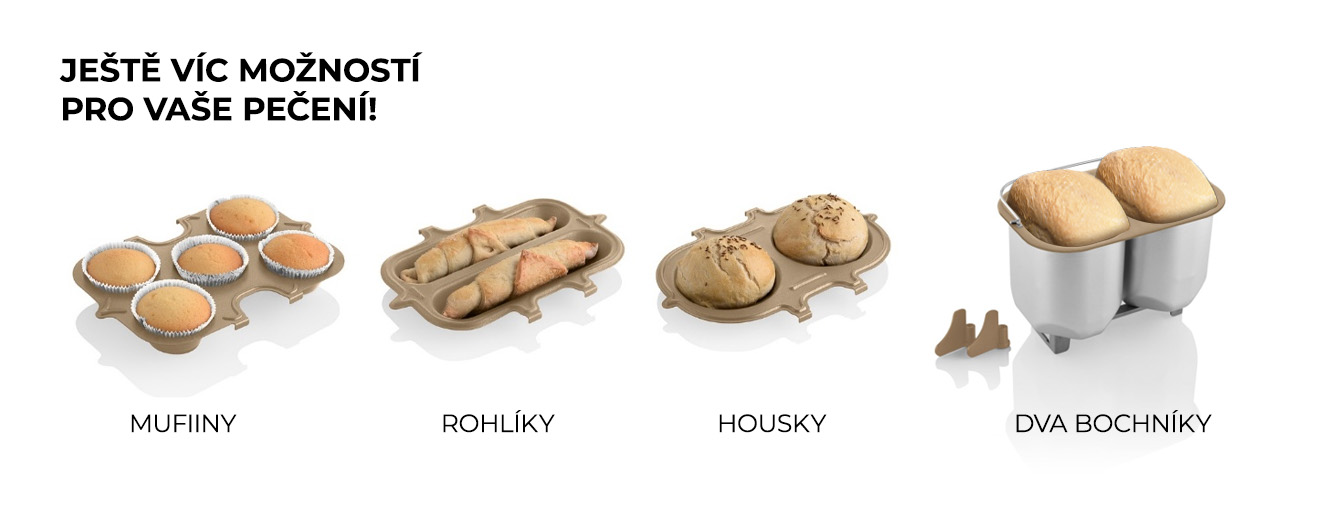 - Programy pro zhotovení muffinů, bulek a rohlíků při použití dokoupitelného příslušenství