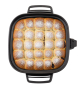 Tepelně izolovaná držadla umožňují pohodlnou a bezpečnou manipulaci. Víko je opatřeno skleněným průzorem pro snadnou kontrolu přípravy jídla a ventilačními otvory pro optimální odvod páry. Bezpečnostní pojistka zajistí automatické vypnutí přístroje při nesprávném sestavení nebo odejmutí víka, což výrazně zvyšuje bezpečnost používání. Nepřilnavý povrch nádoby zabraňuje připékání a usnadňuje čištění.