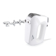 Ergonomicky tvarovaná rukojeť dobře padne do ruky a spolu s odlehčenou konstrukcí šlehače zajišťuje pohodlnou manipulaci i při delším šlehání. Dvě dlouhé šlehací metly zajišťují dokonalé promíchání surovin a hnětací háky o délce 200 mm si zase poradí s kynutým i hutnějším těstem. Jeden přístroj tak bez problémů zastane více úkolů. Tlačítko pro snadné uvolnění metel a háků urychluje výměnu příslušenství i následné čištění.
