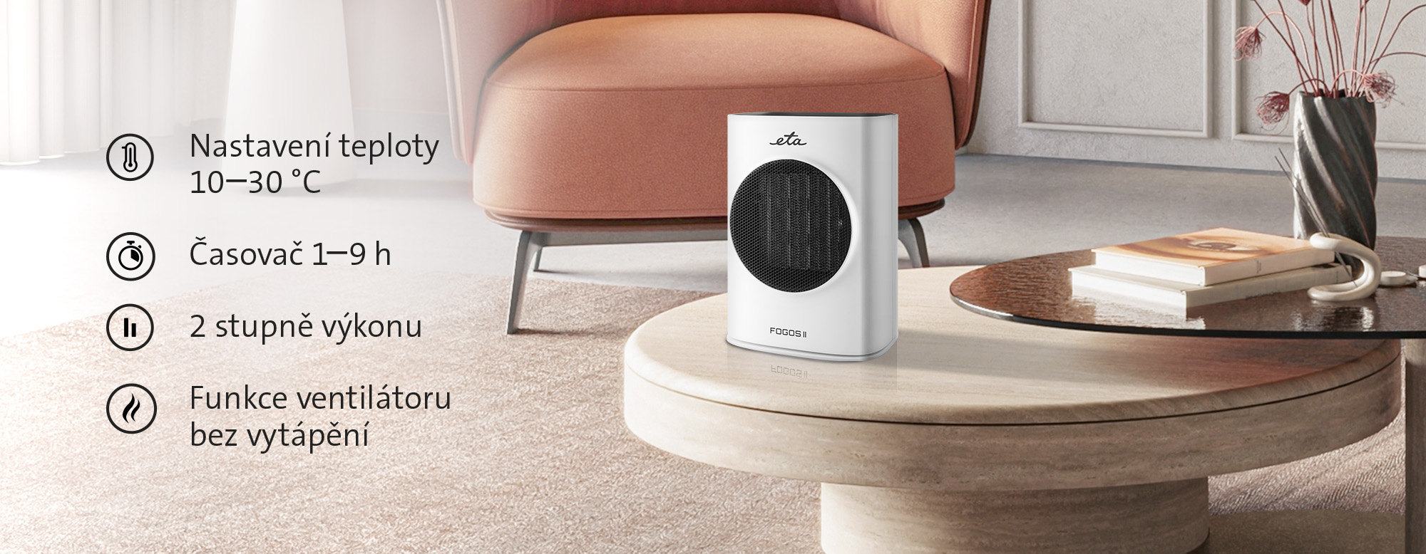 Venku přituhuje, ale doma to může být pořád příjemné. Teplovzdušný ventilátor ETA Fogos II je vybavený PTC keramickým výhřevným systémem. Ten díky akumulaci tepla v keramických článcích zajistí vysoký výkon s nižší spotřebou elektrické energie. Sálavé teplo je navíc příjemnější.
