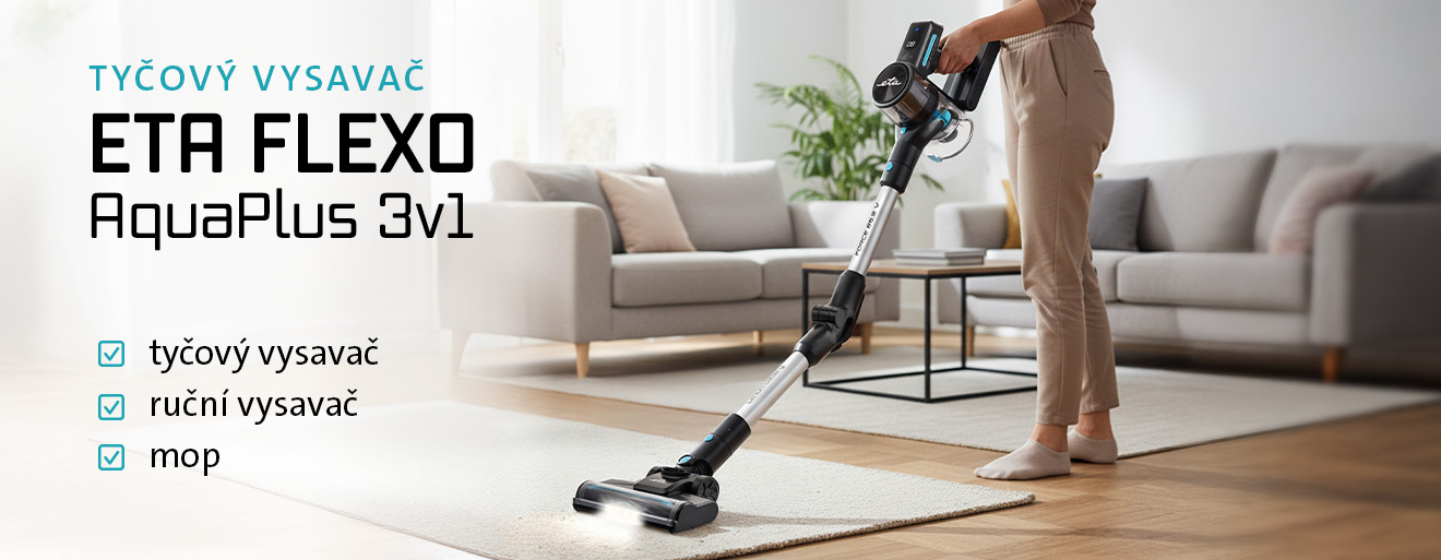 Multifunkční tyčový vysavač ETA Flexo AquaPlus je vaším novým spojencem v boji proti prachu a nečistotám. Díky provedení 3 v 1 kombinuje funkce tyčového vysavače, ručního vysavače a mopovacího nástavce – zvládne tak vysávat i vytírat v jednom kroku a ušetří vám spoustu času i energie.