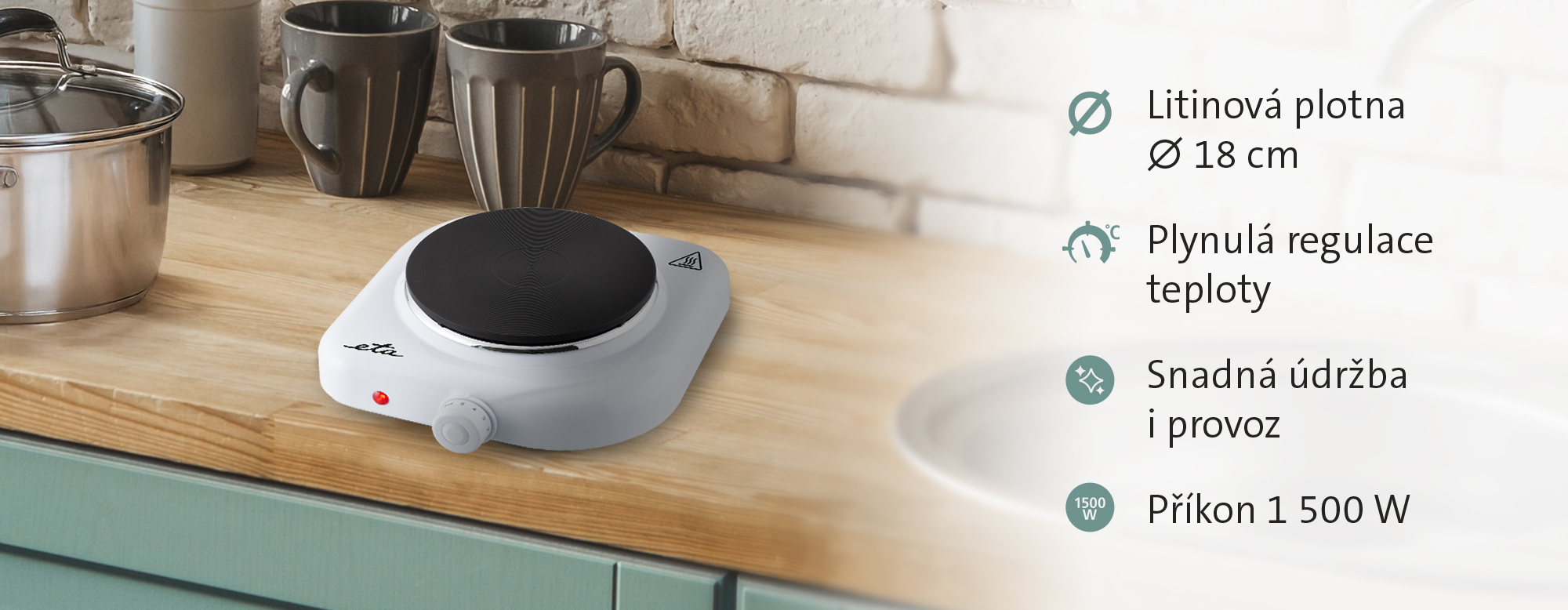 S příkonem 1500 W zvládne vařič ETA připravit jídlo bez dlouhého čekání, a díky dlouhému kabelu ho snadno připojíte, kde zrovna potřebujete.