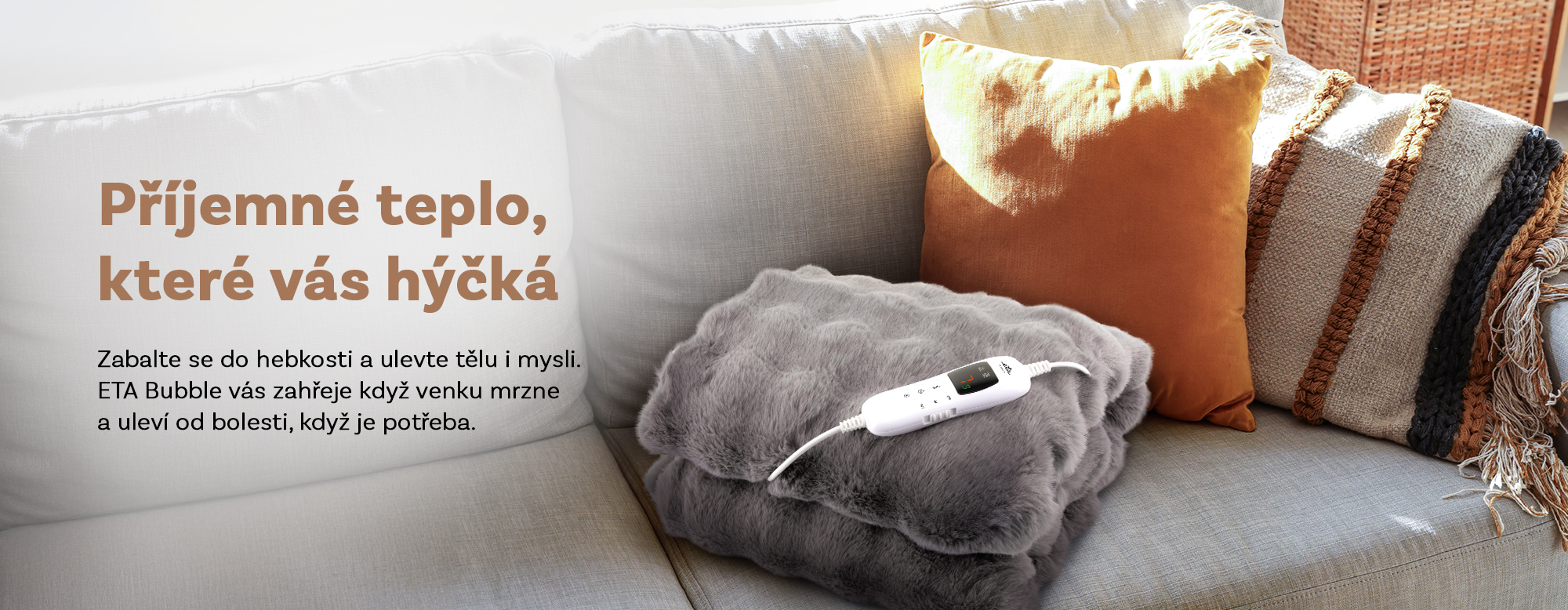 S elektrickou vyhřívací přikrývkou ETA Bubble zažijete okamžitý komfort a úlevu od svalových, menstruačních, ischiatických, kloubních a revmatických bolestí. Příjemné teplo, které produkuje, vám pomůže nejen při bolesti, ale i během sychravých dnů nebo chladných nocí.