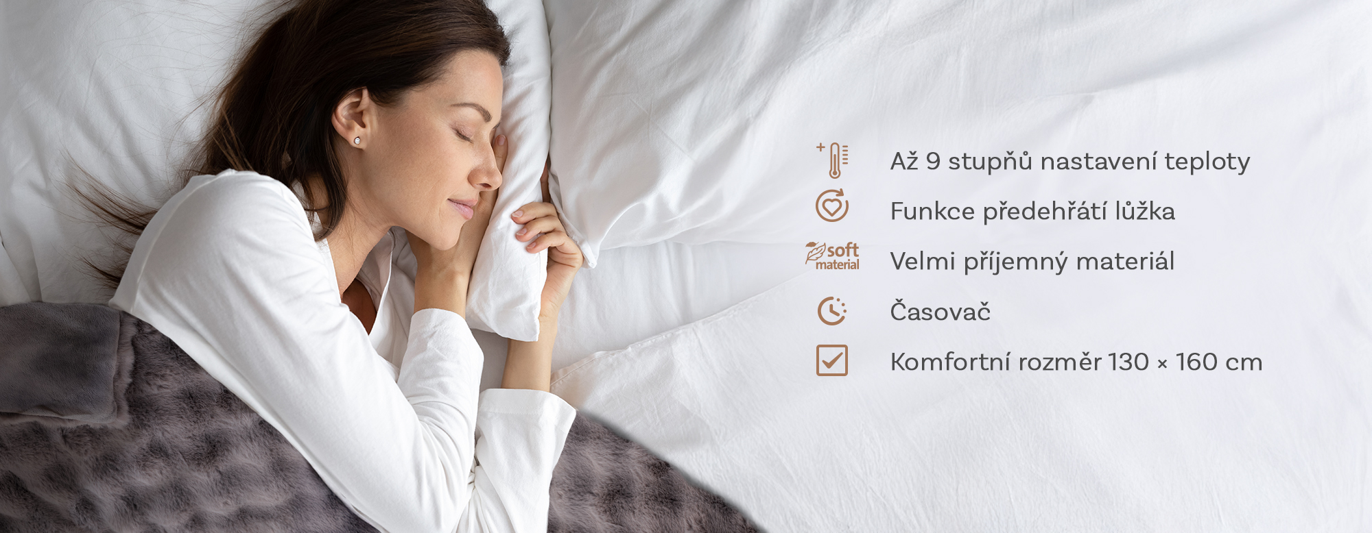 Pro vaši bezpečnost je deka vybavena bezpečnostním čidlem proti přehřátí. S časovačem si můžete nastavit požadovanou délku vyhřívání až do max. 9 hodin, poté se ohřev automaticky vypne.