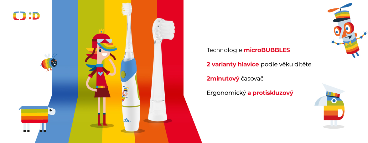 Dětský sonický kartáček ETA s motivy ČT Déčko spojuje bezpečnou a šetrnou péči s radostí a motivací dětí. Podporuje osvojení správných hygienických návyků a proměňuje čištění zoubků v příjemný každodenní rituál.