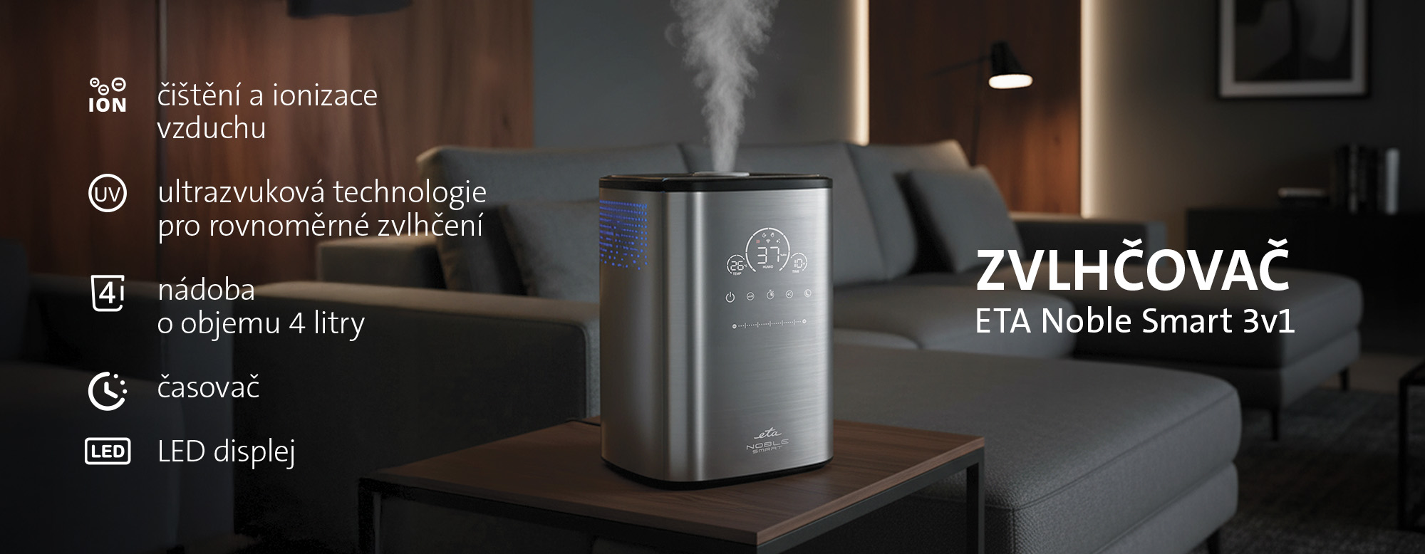 Společnost ETA svým produktům věří. Na zvlhčovač vzduchu ETA Noble Smart vám tak poskytuje prodlouženou záruku na 3 roky na motor. Pro získání záruky se bezplatně zaregistrujte ZDE.