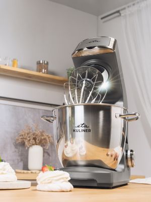 Kuchyňský robot má zpravidla mísu a metly přesně zkalibrované, takže metla obsáhne celou plochu mísy. Nemusíte se tak o nic starat, jen postupně zvyšujte otáčky dle návodu. V kuchyňském robotu ETA Gratus Kuliner použijte speciální šlehací metly.