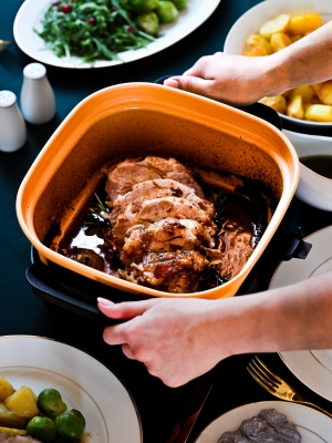 Pečenka zapadne do vaší kuchyně nejen filozofií, ale také designem. Vybrat si totiž můžete ze tří fresh barevných odstínů, které se sladí s jakýmkoliv moderním interiérem. Elektrický pečicí hrnec sám o sobě působí stylově, a tak v něm rovnou můžete jídlo servírovat na stůl. Ušetříte tím nejen další nádobí, ale i čas strávený u dřezu.