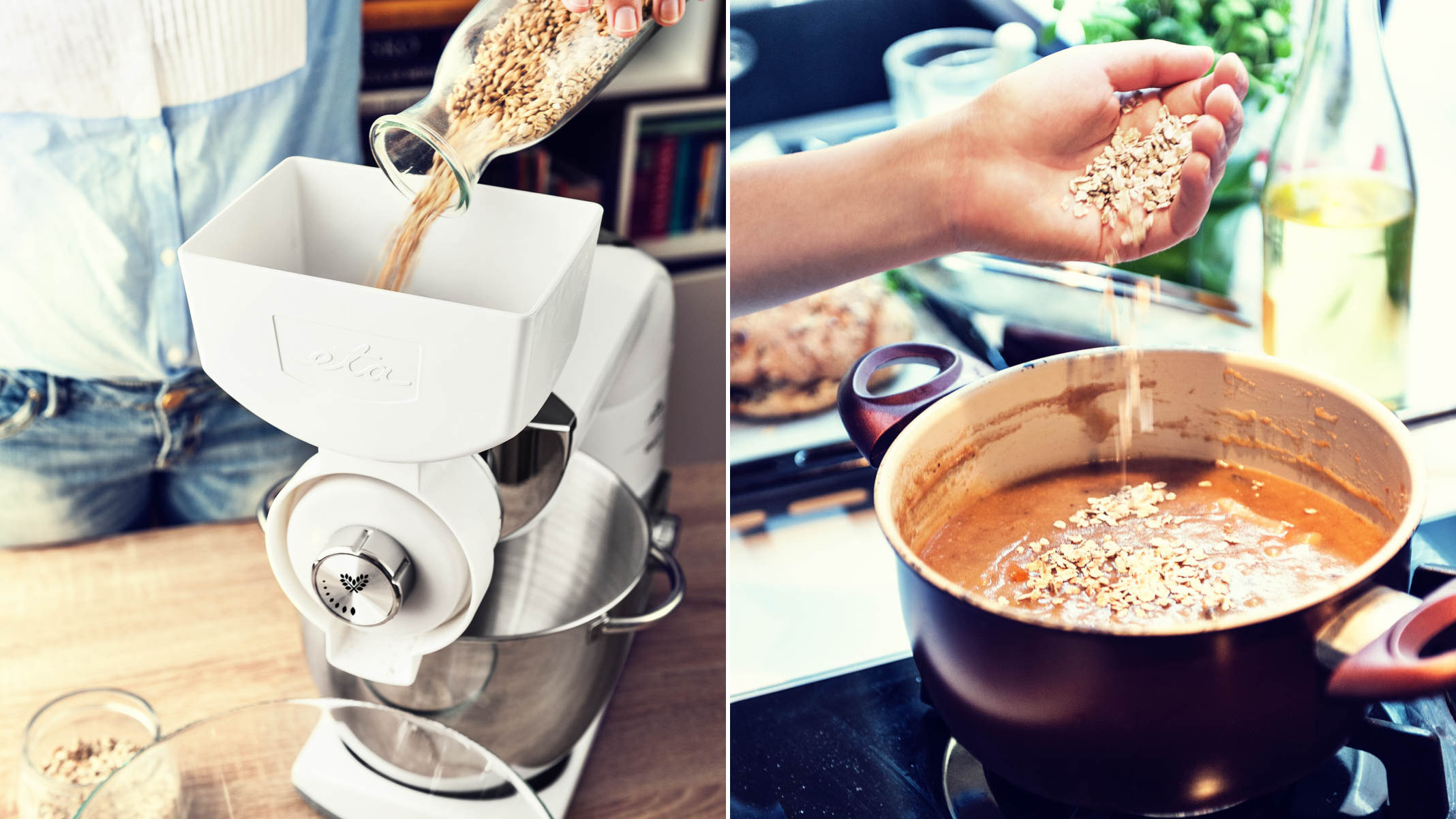 1. Pomocí mlýnku ETA Gratus umelte nahrubo pohankovou lámanku. Pohankovou mouku namelte najemno. Houby namočte do vody. Cibuli oloupejte a nakrájejte najemno, ostatní zeleninu oloupejte a pokrájejte nadrobno.