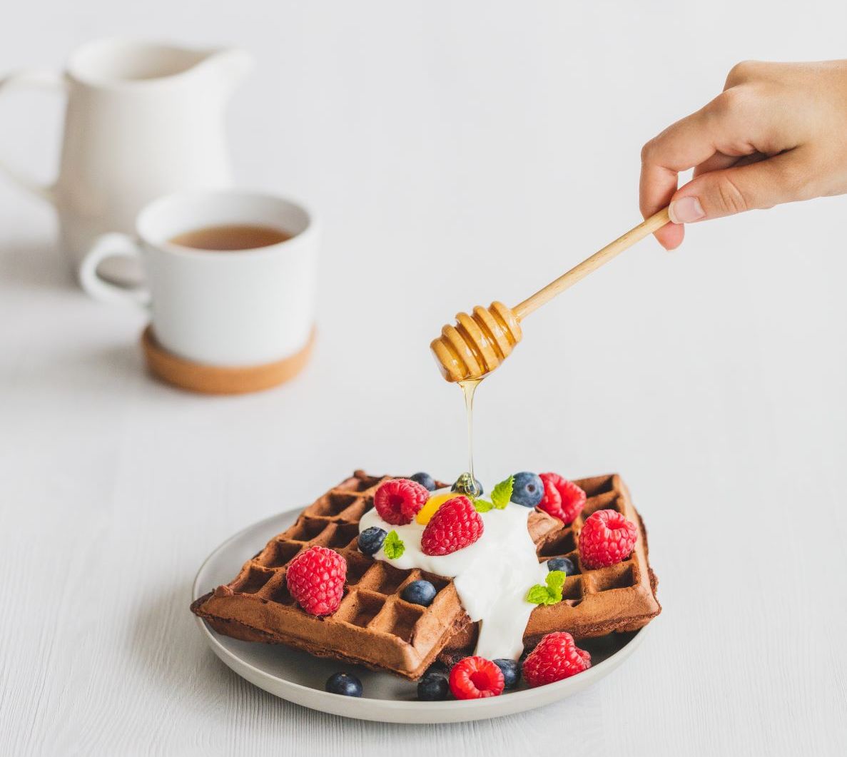 4. Vafle podávejte ještě teplé, ozdobené například domácím jogurtem a čerstvým ovocem.
