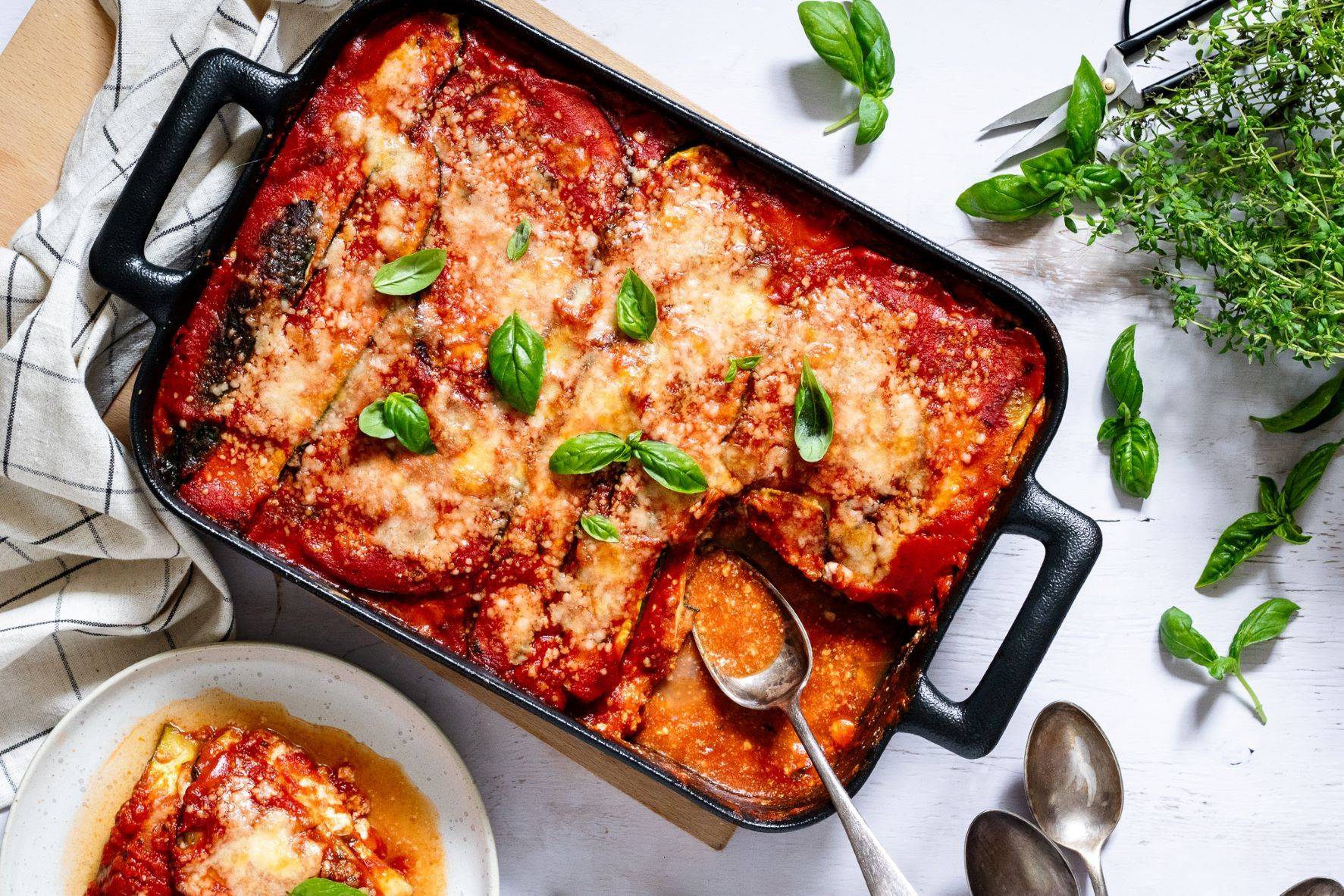 Jde to i bez masa. A také bez těstovin. Zkuste trochu netradiční formu lasagní, kde pláty těsta nahrazují lilky a cukety a bešamel zase lahodný sýr. Pro zvýšení hodnoty bílkovin můžete do omáčky vmíchat hotovou cizrnu, fazole nebo čočku, případně můžete vařit s červenou loupanou čočkou.