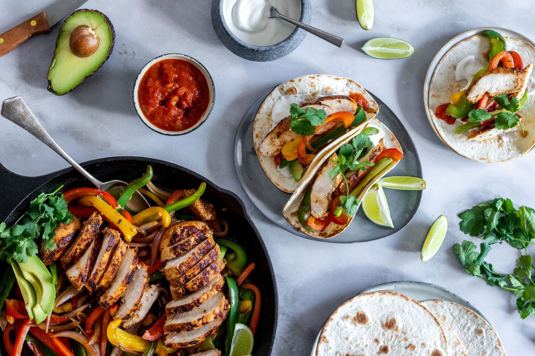 "Fajitas" – už název zní dobře. Ještě lépe tohle mexické jídlo vypadá. A chuť? Tak ta je ze všeho nejlepší. Člověk by nevěřil, že tuhle efektivní a efektní hostinu zvládne rodině připravit do půl hodiny. Fajitas můžete podávat s tortillami i s rýží, s guacamole, zakysanou smetanou a rajčatovou salsou.