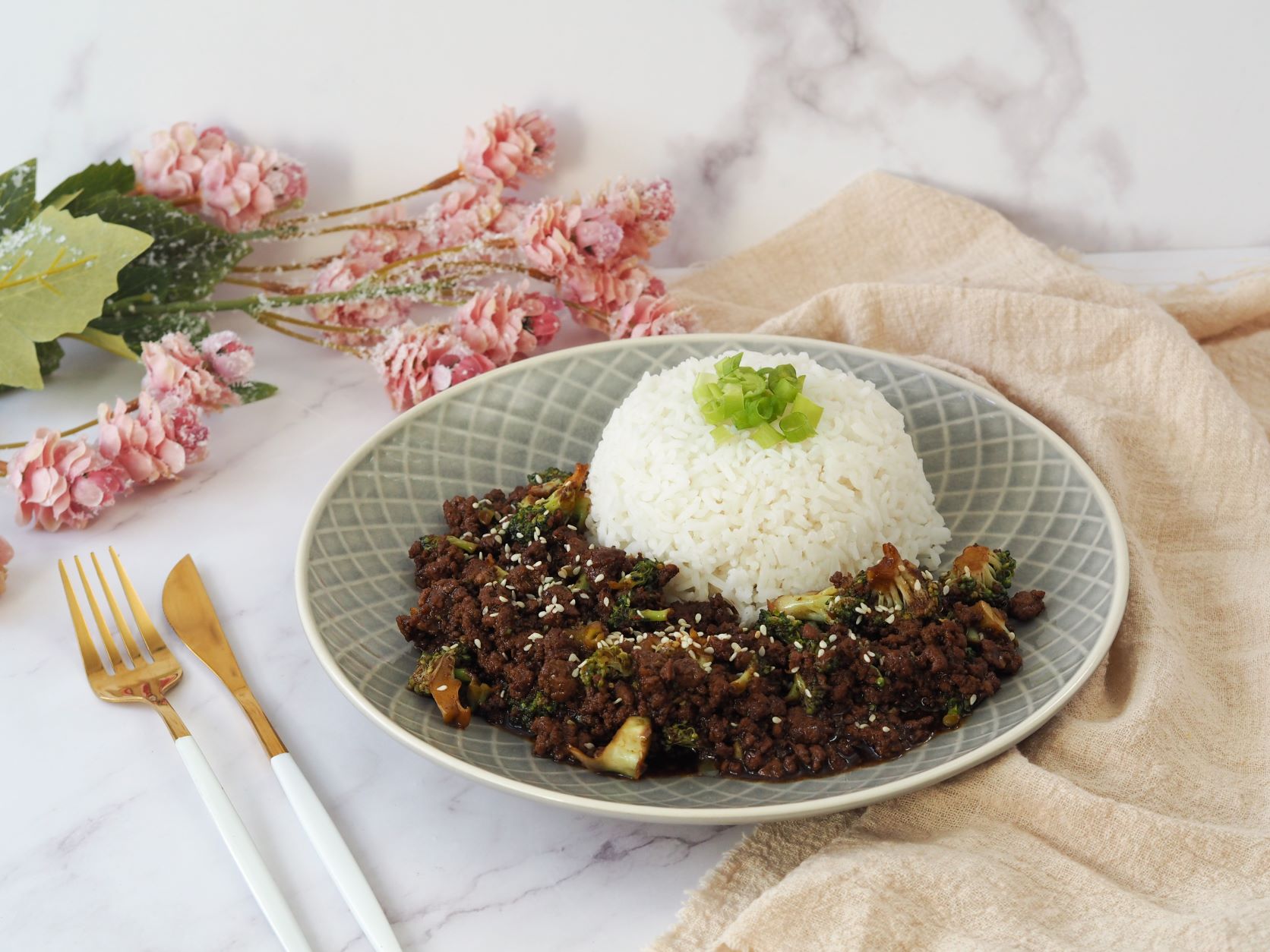 Připravte si k obědu nebo večeři hovězí s omáčkou na asijský způsob. K podávání je ideální rýže basmati nebo rýžové nudle. Nakonec posypejte drcenými arašídy a sezamovými semínky.