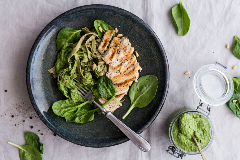 Máte rádi jednoduché a rychlé recepty na těstoviny? Vyzkoušejte těstoviny se špenátových pestem podle Fitrecepty.info. Špenátové pesto je prostě skvělé, kromě těstovin ho můžete namazat třeba na bruschetty nebo přidat lžící do různých polévek či pomazánek. V lednici vám vydrží až týden a můžete ho tak mít kdykoliv k dispozici pro přípravu rychlé večeře.