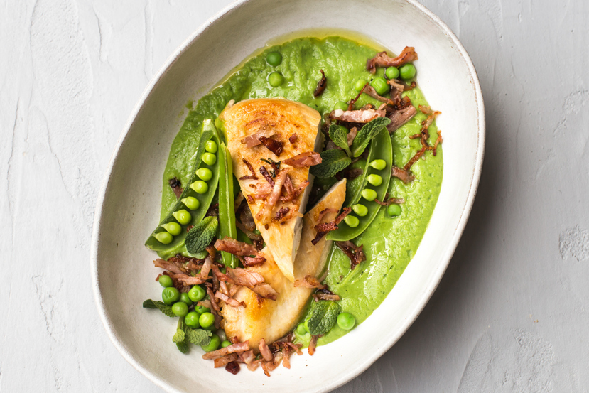 Kuře s hráškovým pyré s mátou