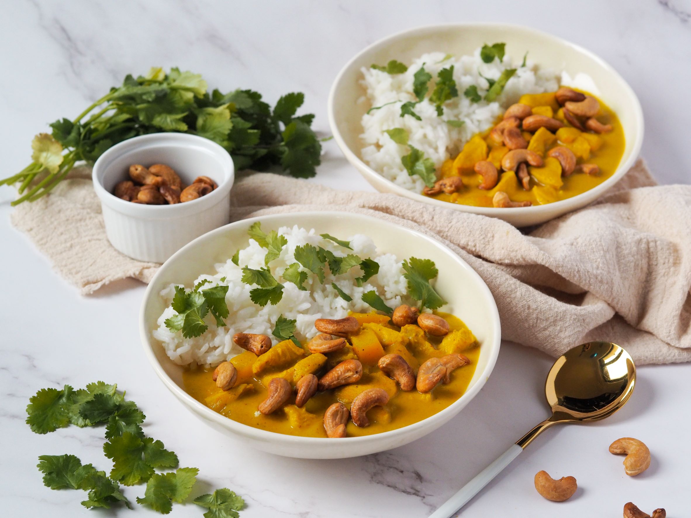 7. Kari servírujtes rýží, kešu oříšky a čerstvým koriandrem.