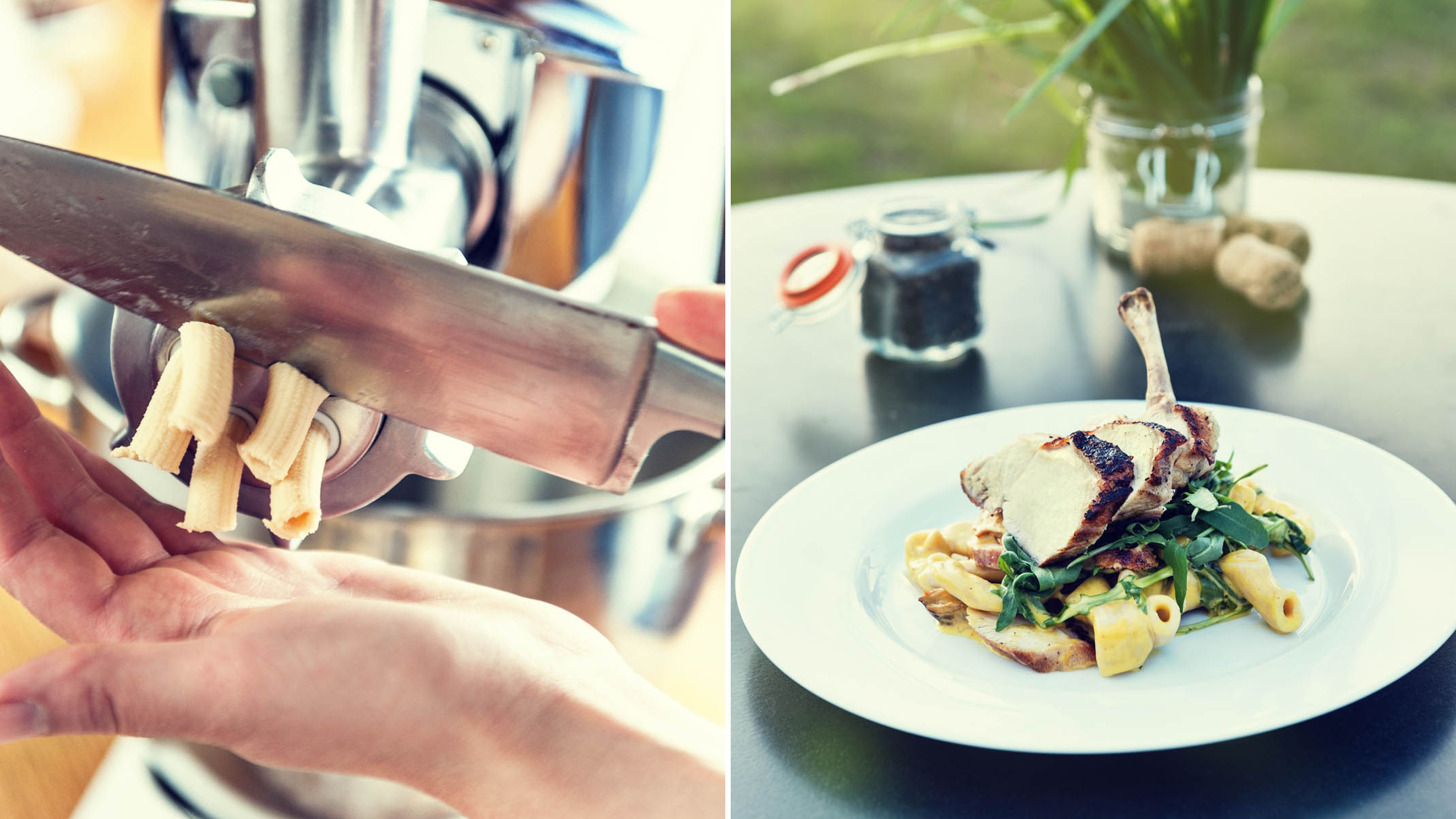 Lehké kuřecí maso a těstoviny se skvěle doplňují. Navíc výroba domácích penne a majonézy může být zábava nejen pro vás, ale i pro vaše děti.