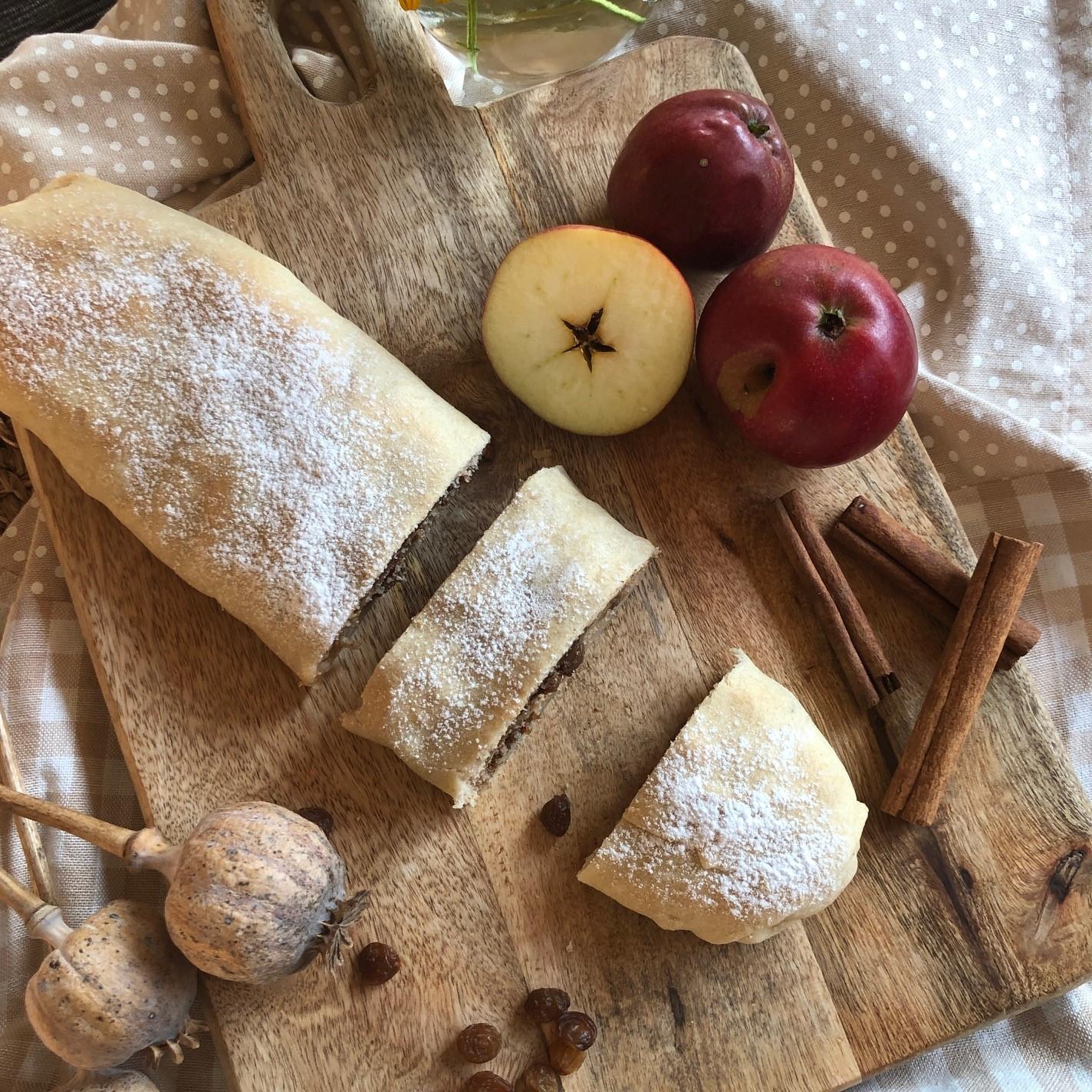 1. Všechny suroviny na štrůdl kromě náplně smíchejte a vypracujte v hladké těsto.