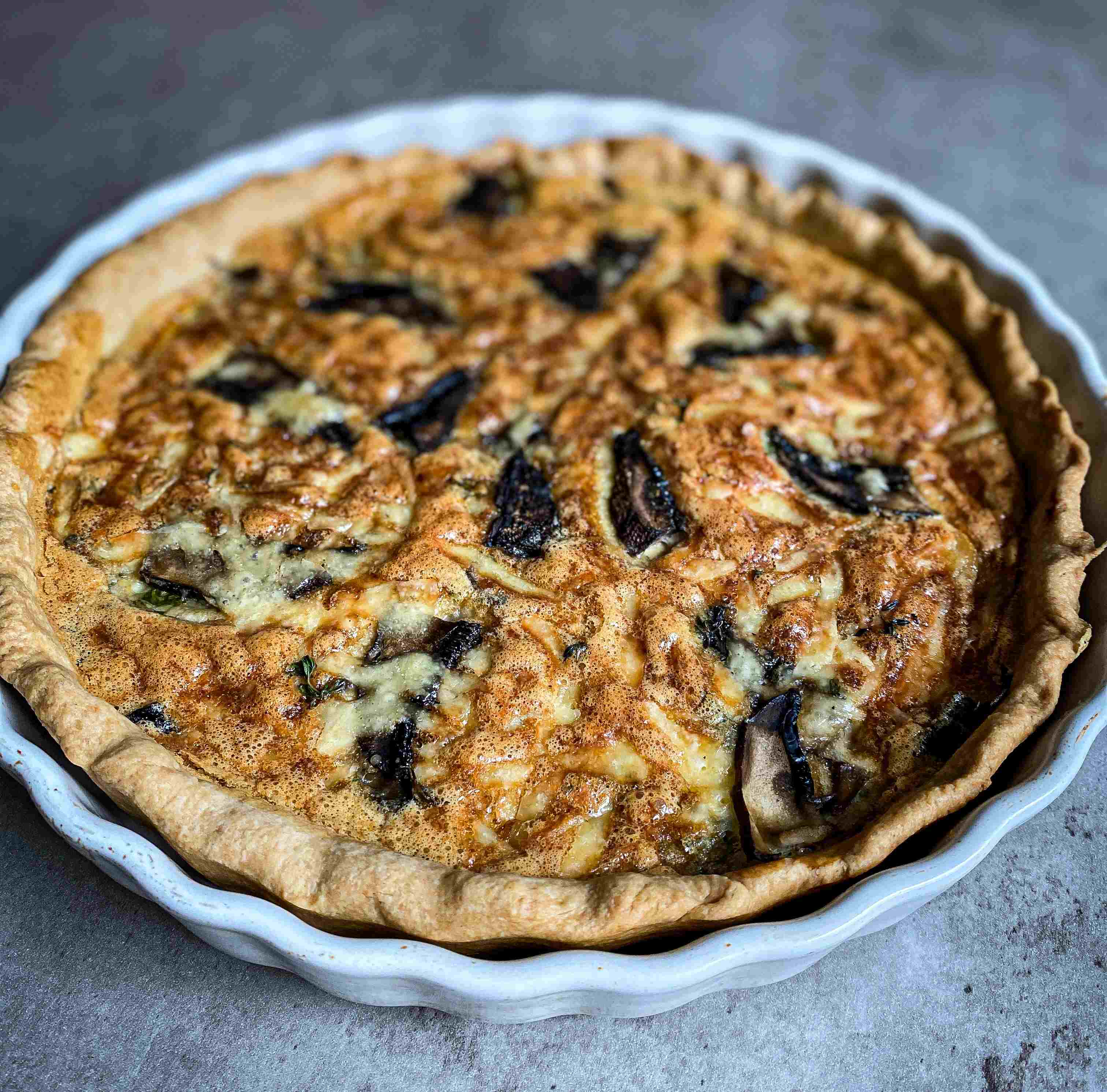 Quiche se zkaramelizovaným česnekem, tymiánem a portobello žampiony