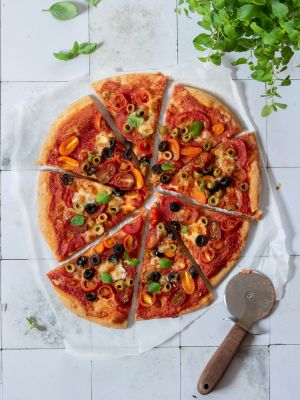 Rajčatová pizza s olivami