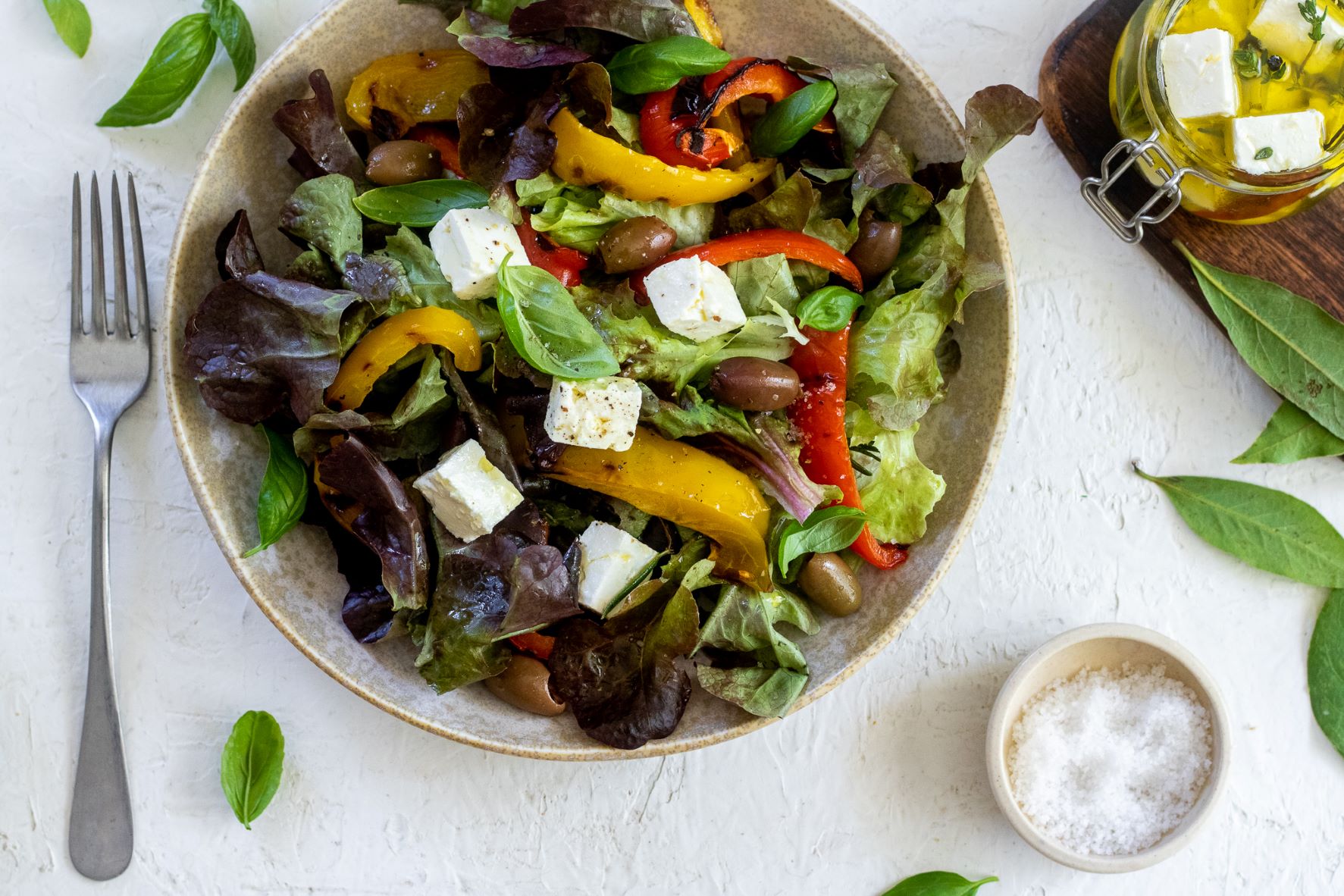 Salát s marinovanou fetou a grilovanými paprikami