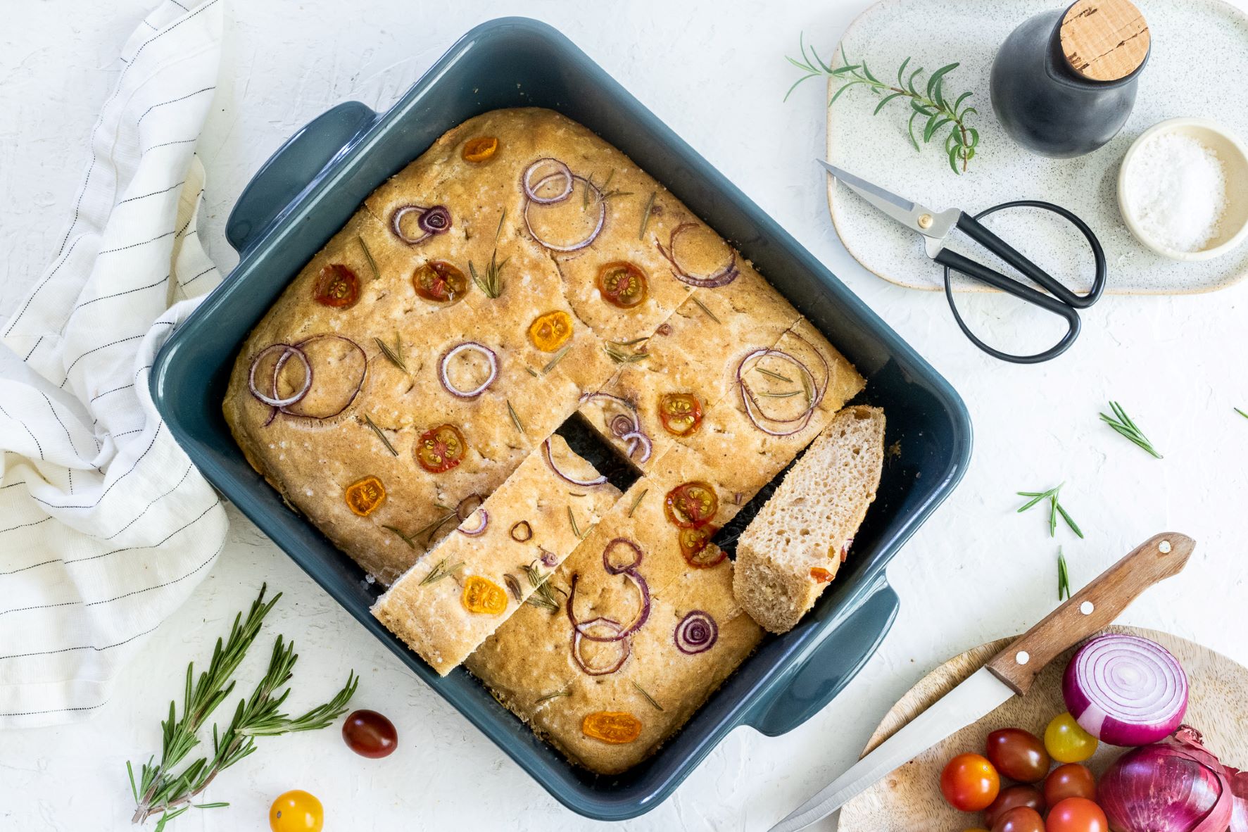 Focaccia je tradiční italské pečivo. Těsto se podobá pizze a dochucuje se solí, olivovým olejem nebo bylinkami. Focaccia je ideální univerzální příloha. Hodí se k salátům, grilovaným masům nebo jako sendvičový chléb. Špaldová focaccia od blogerky Martiny Lancingerové má díky špaldové mouce vyšší obsah vlákniny, díky které vás lépe zasytí.