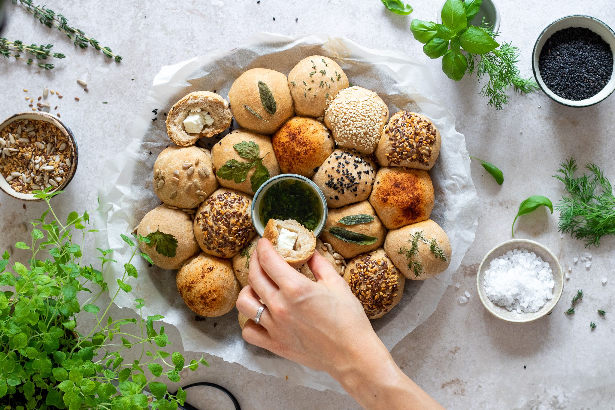 Sýrové bochánky à la bubble bread s bylinkami a semínky