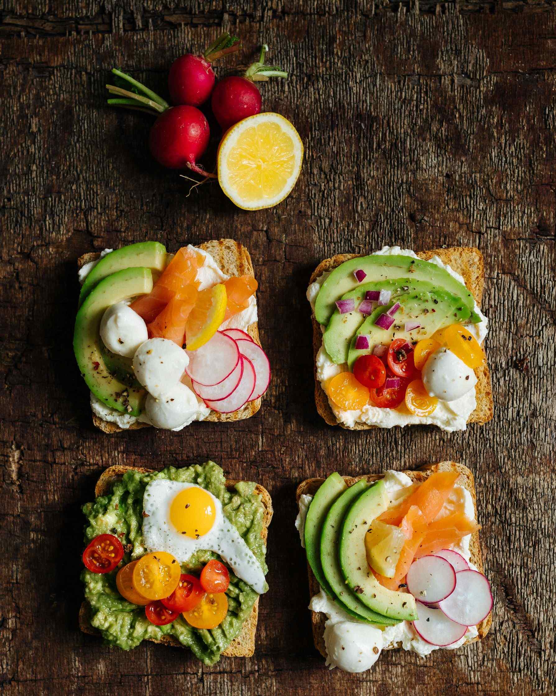 3. Připravené tousty namažte Lučinou a poklaďte avokádem, mozzarellou, rajčátky, ředkvičkami a avokádem. Osolte a opepřete dle vlastní chuti a případně přidejte i vařená či smažená slepičí nebo křepelčí vejce.