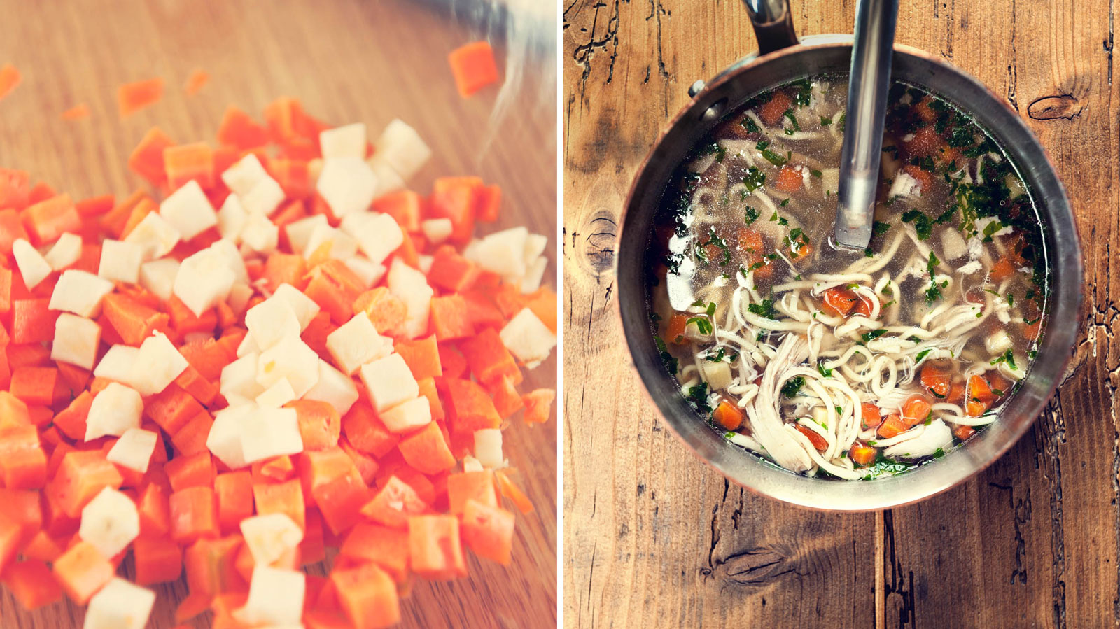 Kuřecí vývar je lék. Pomáhá nás postavit na nohy nejen při chřipce, ale jistě ho oceníme i při nepříjemných kocovinách. Příprava sice není nijak složitá, ale potřebuje svůj čas. Zkuste tuto klasickou poctivou polévku vylepšit doma vyrobenými nudlemi. Můžete si připravit větší množství a schovat si je do zásoby.