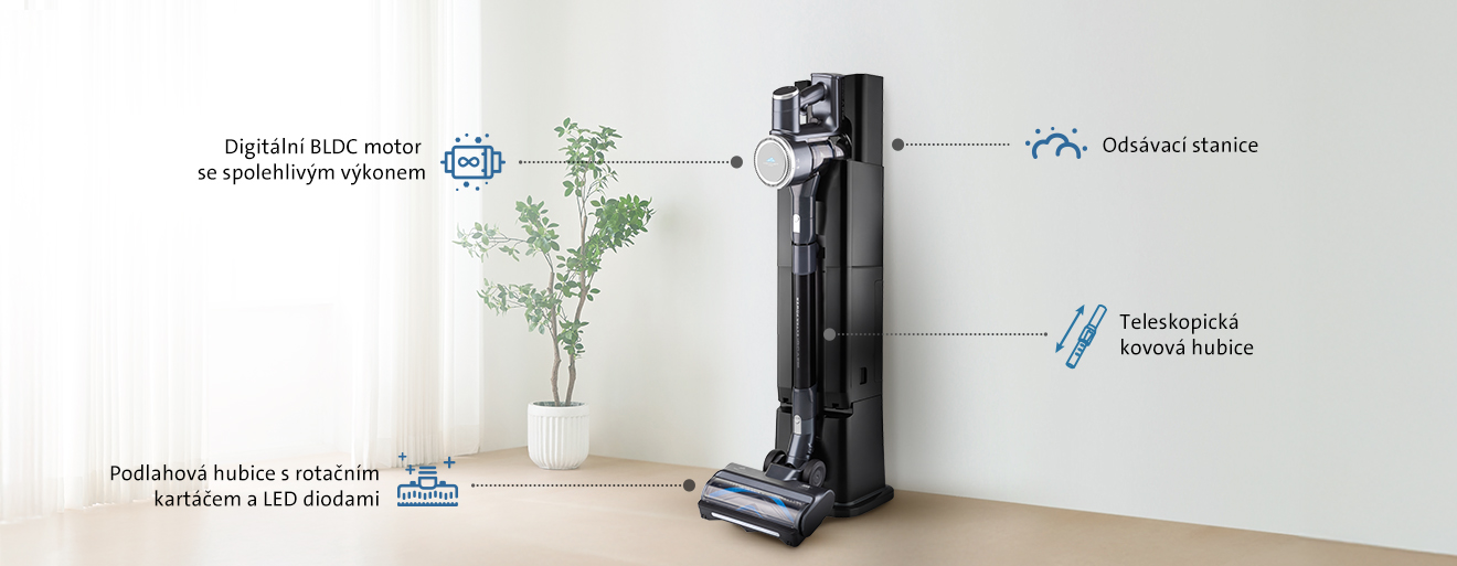 Tyčový a ruční vysavač 3 v 1 s odsávací stanicí