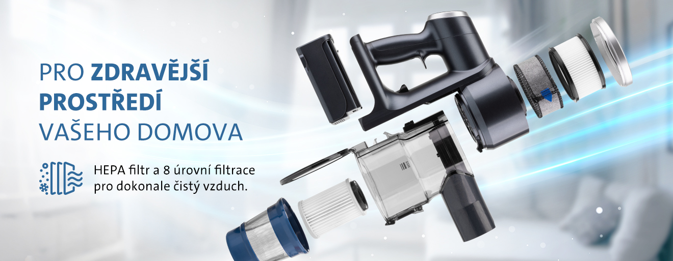 Vysavač je vybaven vysoce účinnou 8stupňovou filtrací, která zachytí i ty nejjemnější prachové částice, což jistě ocení nejen domácnosti s alergiky. Součástí systému je až trojitá HEPA filtrace, která zajišťuje maximální čistotu vyfukovaného vzduchu a brání opětovnému šíření jemného prachu do prostoru.